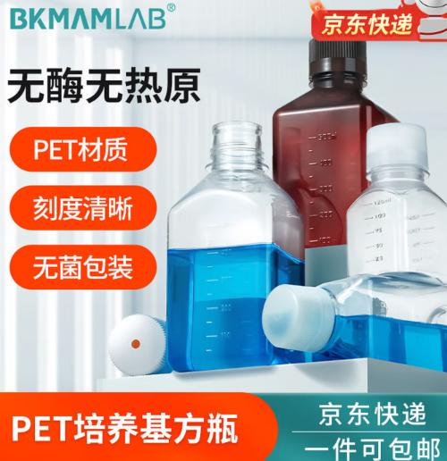 • 比克曼 一次性PET培養基方瓶 血清瓶 無菌滅菌帶刻度透明樣品瓶留樣瓶